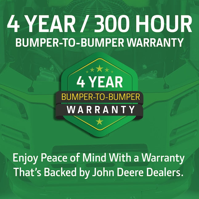 🛡️ Extended Warranty & Support: This mower comes with an industry-leading 4-year/300-hour bumper-to-bumper limited warranty. Backed by your local John Deere dealer, factory-trained service professionals ensure your equipment keeps working as hard as you do. Includes a rigorous 10-Point Pre-Delivery Inspection prior to sale.