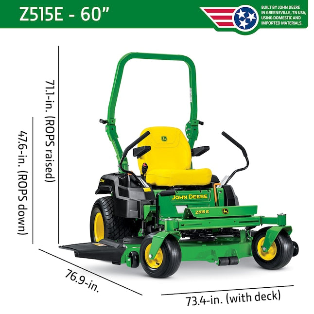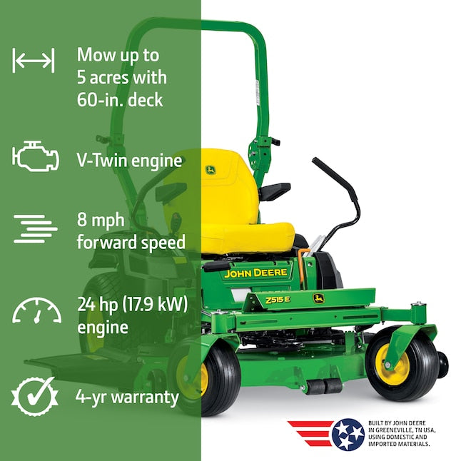 John Deere Z515E ZTrak™ Zero Turn Mower: 24 HP ELS V-Twin, 60″ Accel Deep™ Deck, ROPS