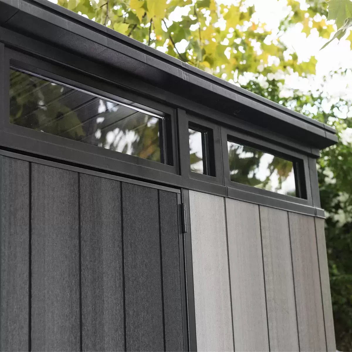 The Keter Artisan 9×7 Pent Plastic Shed in Grey offers a practical and durable storage solution for any garden. With its wood-effect DUOTECH™ panels, steel-reinforced structure, and heavy-duty floor, it provides secure, long-lasting storage for tools, garden furniture, bicycles, and equipment. Its high ceiling, double doors, and window create a functional and accessible space.