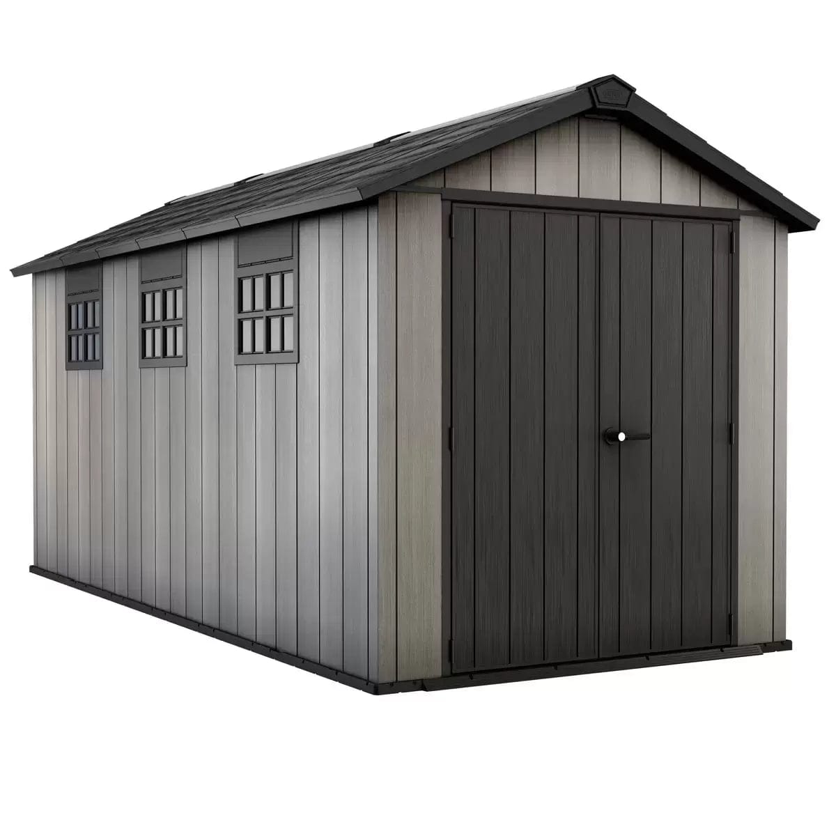 Keter Oakland 7.5×15 Plastic Shed with Floor and Windows – Grey