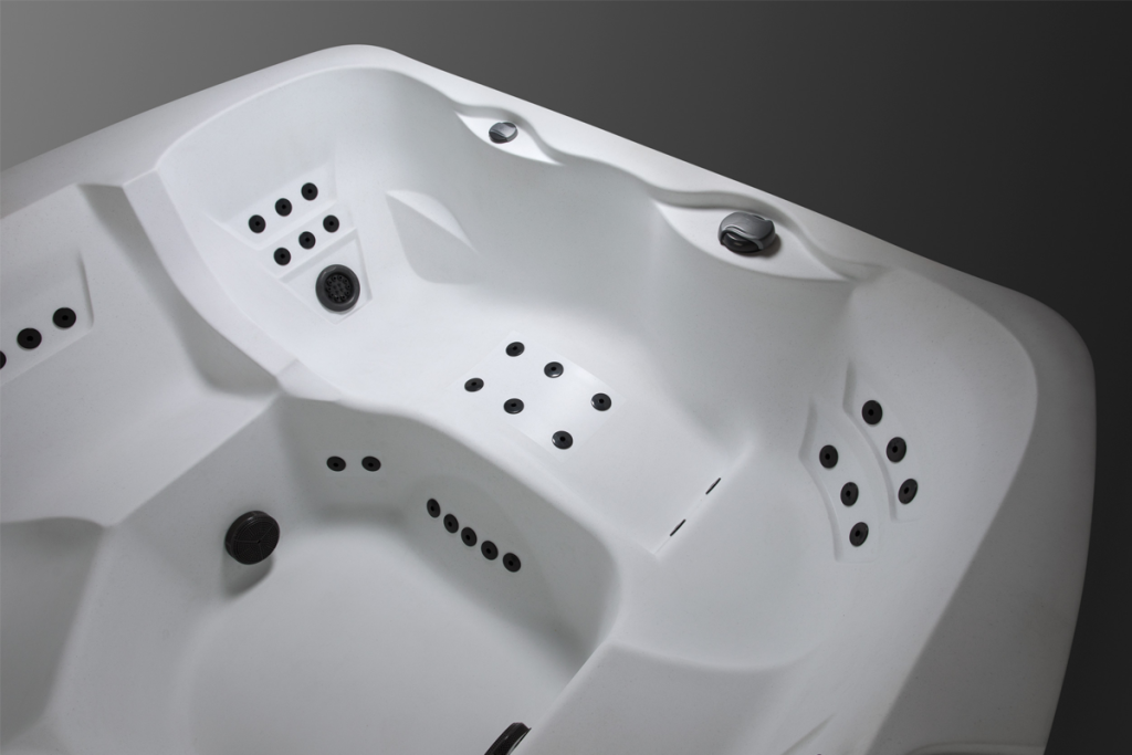 Powered by two 2.5 HP pumps, the jets are adjustable using the air control valves and digital control panel for a customized massage experience.