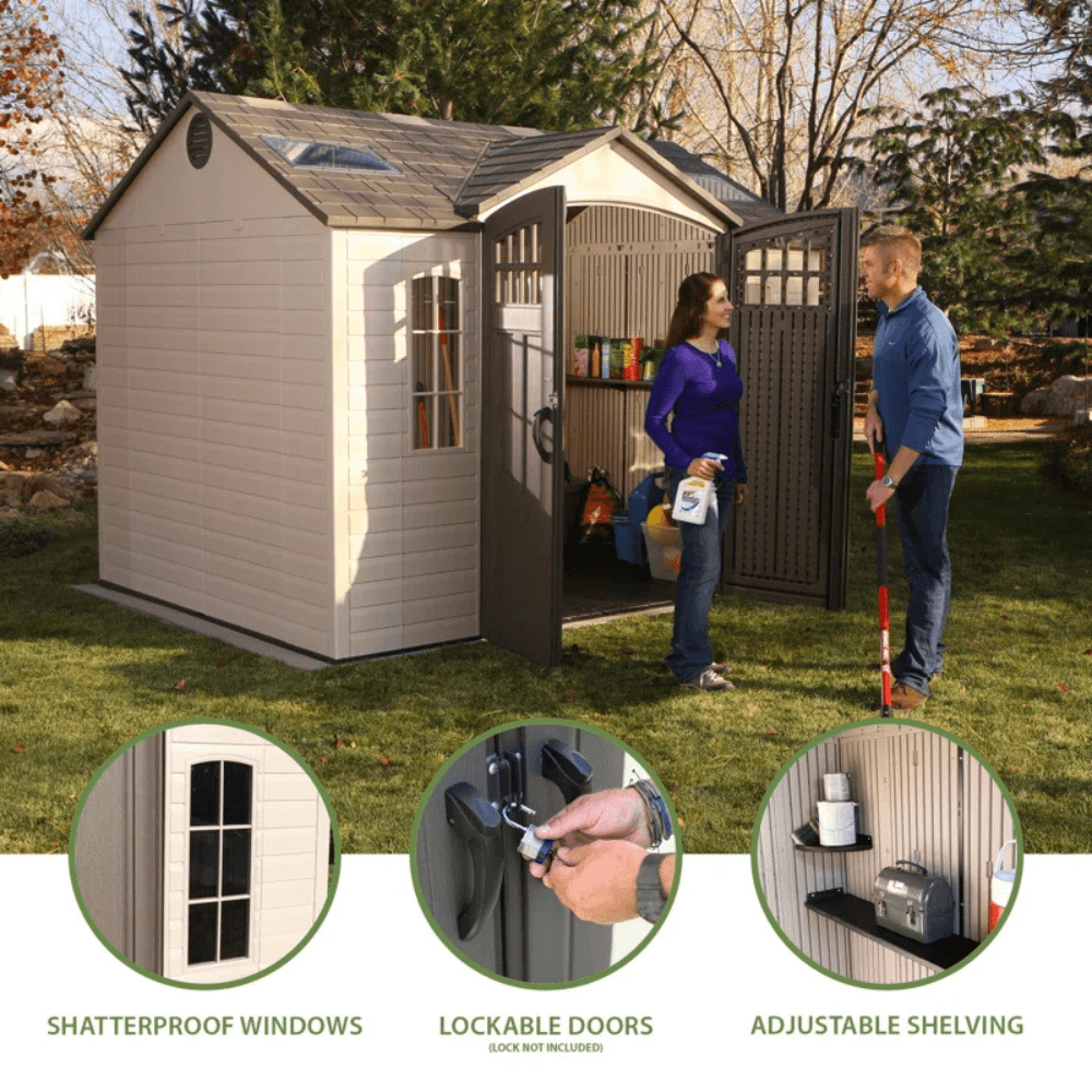 This Lifetime shed offers a durable, organized, and secure outdoor storage solution.
