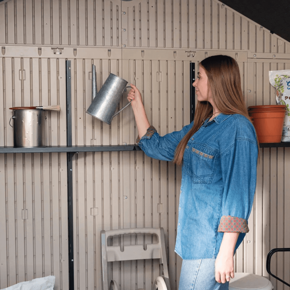 This Lifetime shed offers a durable and spacious storage solution for your yard and garden needs.