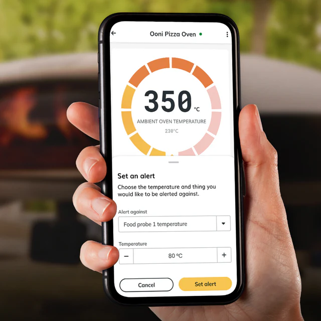 - Smart Cooking with Ooni Connect™: Take the guesswork out of the flame. The Bluetooth-enabled Digital Temperature Hub monitors both the ambient oven temperature and internal food temperatures via probes, sending real-time alerts to your smartphone.