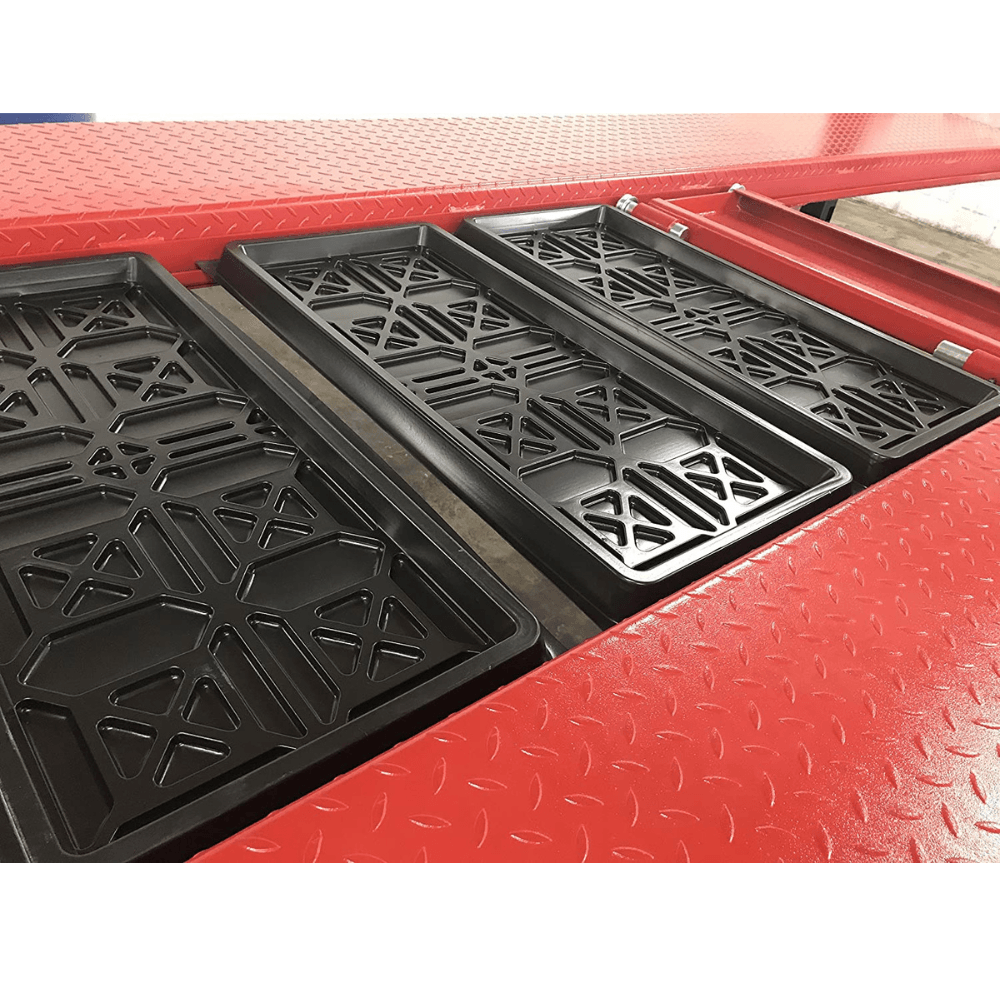 This lift features a stable Outside Slider design and includes essential accessories such as caster kit, jack tray, and drip trays. Its portable structure makes it ideal for use in home garages, service bays, or car collection displays.