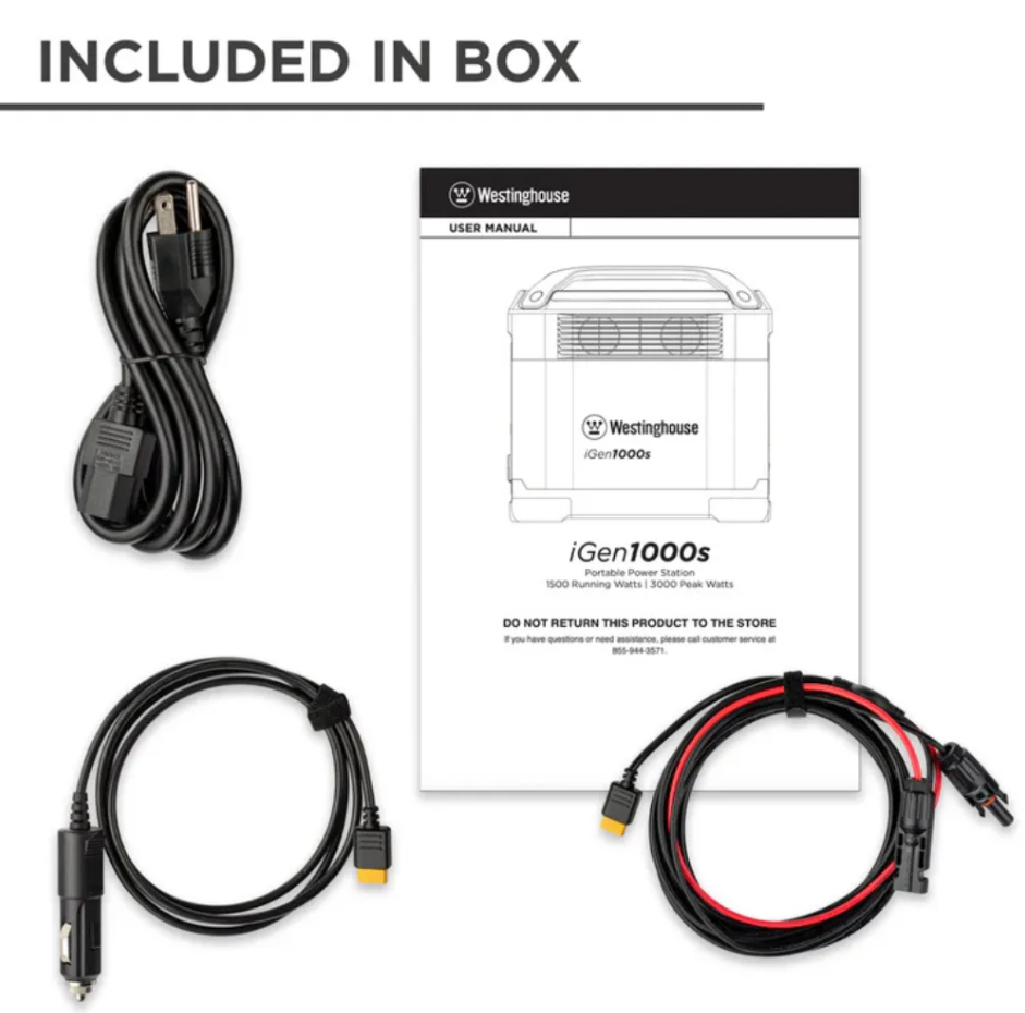 Each Westinghouse i Gen1000 s Portable Power Station package contains essential accessories for immediate deployment: