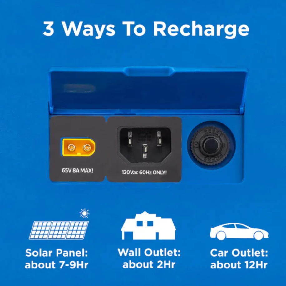 • Multiple Recharging Methods: Offers flexible recharging capabilities to ensure continuous readiness. The unit can be efficiently recharged via a standard wall outlet (e.g., 8-10 hours), a 12V car adapter for on-the-go power replenishment (e.g., 12-15 hours), and is compatible with various solar panels (sold separately) for sustainable energy generation in remote or off-grid settings (e.g., 6-12 hours depending on solar input). This adaptability ensures power is available wherever the user operates.
